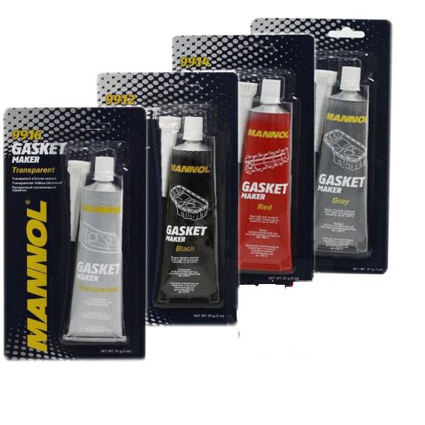 Mannol Gasket-Maker вулканизирующийся в состояние силиконового каучука при комнатной температуре. Обладает исключительной устойчивостью к воздействиям экстремальных температур. Создает надежную прокладку, которая не растрескивается, не дает усадки и смещения под воздействием резких перепадов температуры.